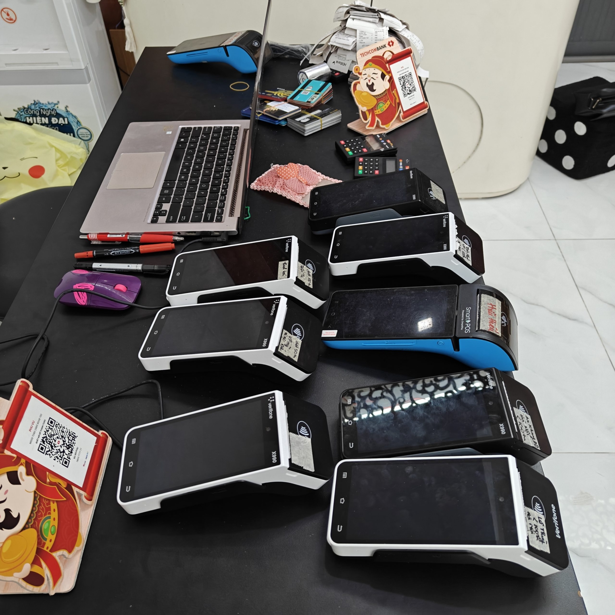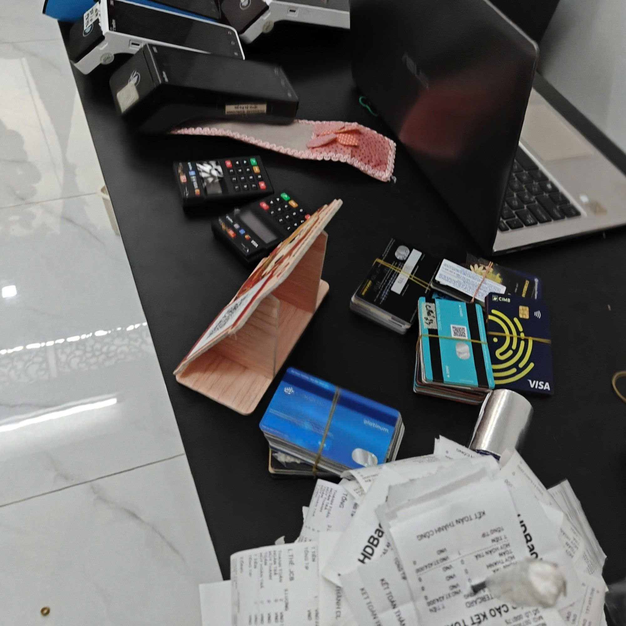 Bước 4: Nhân viên quẹt thẻ qua máy Pos. Sau khi ra bill sẽ chuyển khoản cho khách